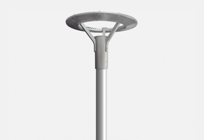 Luminaria led punta de poste de iluminación directa, diseñada para instalar en parques, patios de escuelas, pasillos comerciales exteriores e interiores y estacionamientos Fabricado en inyección de aluminio, acabado con pintura de aplicación electroestática curada al horno